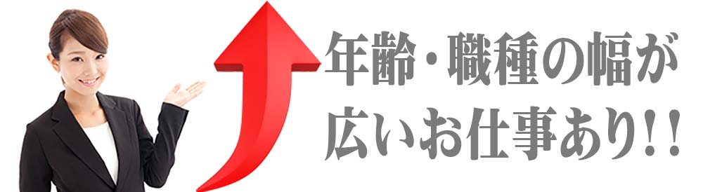 年齢・職種の幅が広い点はもちろん、扶養控除内のお仕事や、単発・短期のお仕事もご用意しております。また未経験の方から経験者まで活躍できる職場をご用意しておりますので、あなたのご希望をお聞かせ下さい。